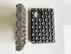 ゴム樹脂からトムソン型での打抜きをする加工法です。緩衝材の製造に必要な加工です。