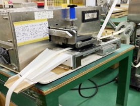 リール品素材への長尺のテープ貼りをします。防水パッキンの製造に必要な加工です。